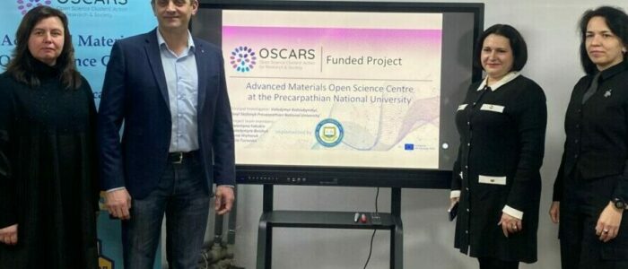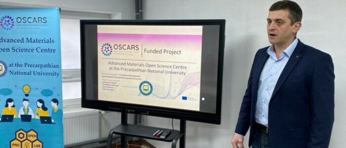 Сьогодні відбулося відкриття Центру відкритої науки в сучасному матеріалознавстві Прикарпатського національного університету (PNU-OpenLab). Під час зустрічі із керівництвом університету та працівниками наукового відділу, завідувачем кафедри матеріалознавства і новітніх технологій Володимиром Коцюбинським було презентовано основну ідею роботи PNU-OpenLab, якою є сприяння входженню українських науковців в європейський дослідницький простір.