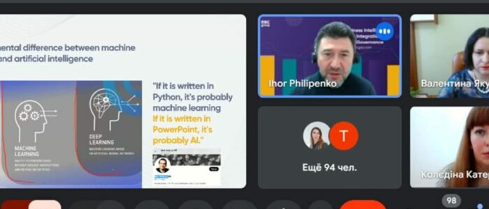 Головним спікером виступив Ігор Філіпенко, директор департаменту розширеної аналітики RBC Group, який розкрив тему “Як зі Штучного Інтелекту приготувати смачне блюдо для бізнесу?”.