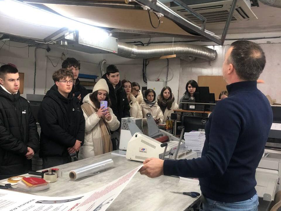 Під час екскурсії студенти не лише ознайомилися з виробничими процесами, а й отримали цінні поради від керівництва друкарні. Як керувати бізнесом у сучасних умовах? Які виклики стоять перед друкарською індустрією? Як автоматизація та цифровізація змінюють поліграфічний бізнес?