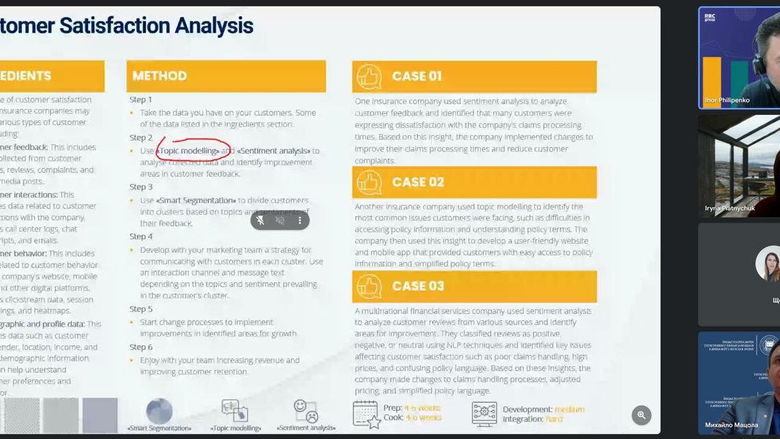 During the lecture, teachers and students learned about: – Fundamental differences between artificial intelligence and machine learning. – Features of the application of different types of machine learning in the business environment. – Concept and practical application of neural networks. – Real possibilities of using large language models (ChatGPT, BARD, LLAMA) in business. Particular attention was paid to the practical aspects of using AI to improve the efficiency of customer service, including: – Segmentation and analysis of behavioral patterns. – Predicting and preventing customer churn. – Development of personalized offers using advanced technologies. – Sales optimization and resource planning. The lecture aroused keen interest of the audience and demonstrated the importance of cooperation between business and education in training future professionals who will be able to effectively use artificial intelligence technologies in their professional activities. We sincerely thank the management of RBC Group, as well as everyone who contributed to the organization of such a relevant and interesting event! We are confident that such meetings will have a positive impact on the training of a new generation of talents in management and business! For reference: RBC Group is a leading company in Ukraine in the field of implementation of innovative technologies for business, which actively cooperates with business and leading higher education institutions in Ukraine to develop digital competencies of future professionals.